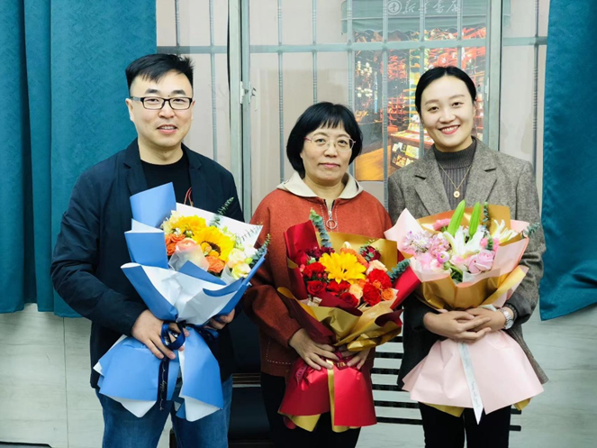 会议最后,苏日娜老师代表英语系为荣休教师和新入职教师赠送鲜花,感谢张涛老师的付出,欢迎新教师的加入,希望新教师接好老一辈教师传递的接力棒,将老教师优良的工作作风传承下去。