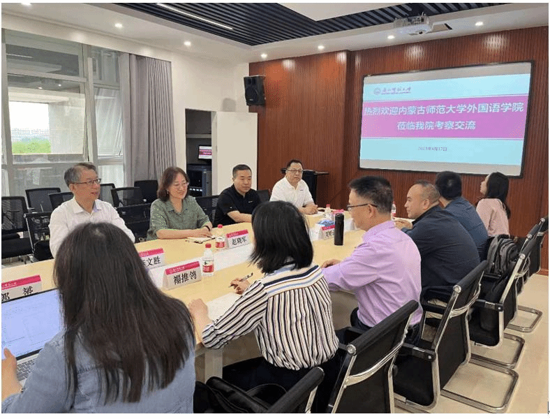 4月19日下午,调研团队来到中南民族大学bat365中文官方网站,与该院党委书记戴迎峰、院长易立新、副院长皋峰及其他相关领导及教师进行了亲切而深入地交流。戴迎峰书记表示,bat365中文官方网站和中南民族大学以及两校的bat365中文官方网站有着几乎相同的使命和任务,期待着双方不断深化合作,在党建、教学、科研等多方面结出更多合作果实。易立新院长详细介绍了该院各方面的建设与发展情况,表示两个学院要在以前合作的良好基础上,在学科建设、科学研究、教学改革等方面形成长期有效的交流机制,互学互鉴,推动两院更深层次、更强力度的合作,共同为外语教育和学科发展做出新的贡献。李文胜书记代表学院党政对该院的热情接待表示衷心感谢,并介绍了bat365在党建及学生工作的情况。在全面介绍学院各方面工作的基础上,赵晓军院长着重介绍了bat365推进“外语+”和“+外语”新文科建设思路、将内蒙古红色文化融入外语教学、狠抓一流专业和一流课程建设等方面的经验、做法和思路。与会人员还分组进行了交流。会后,一行人参观了该院的语言实验室、商务英语实训室及智慧教室等设施。