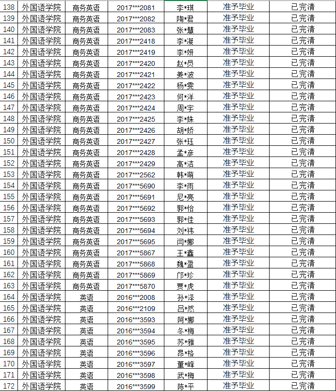 本科未毕业人员名单