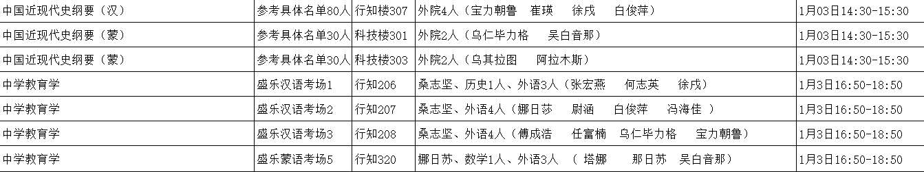 bat365中文官方网站2017-2018学年第一学期公共课期末考试时间具体安排表(盛乐校区)