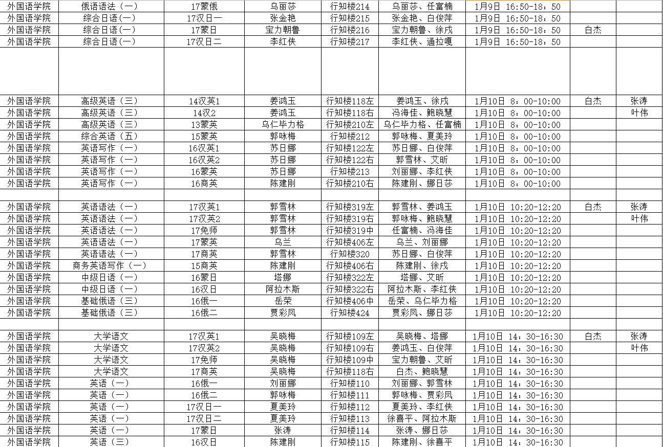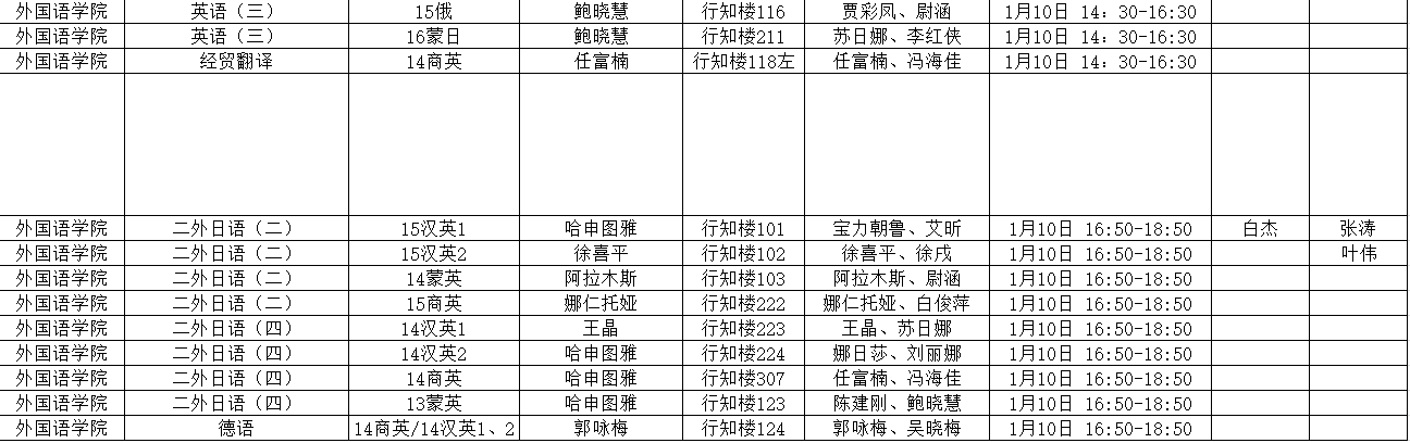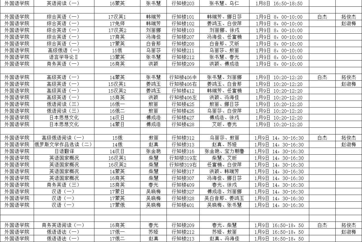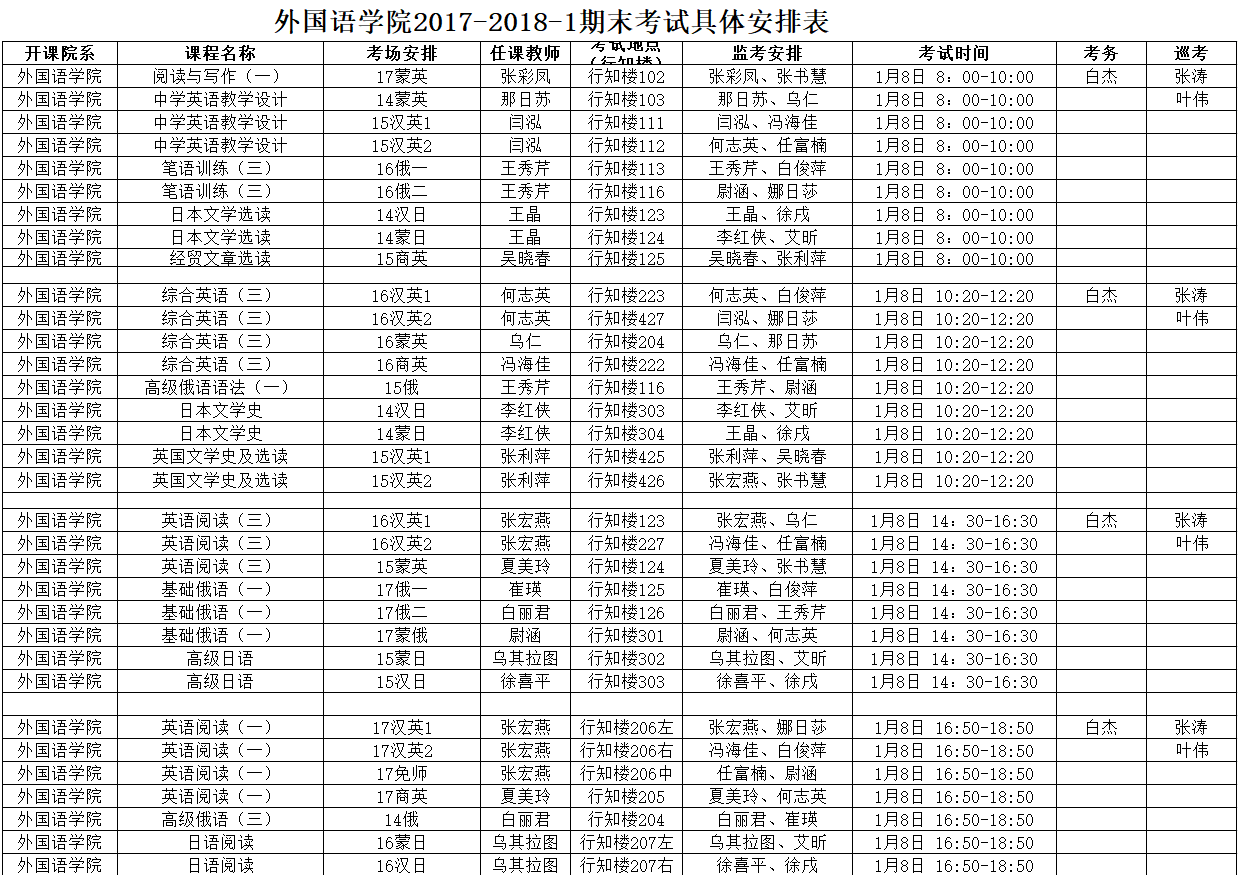 bat365中文官方网站专业课 2017-2018-1期末考试具体安排表