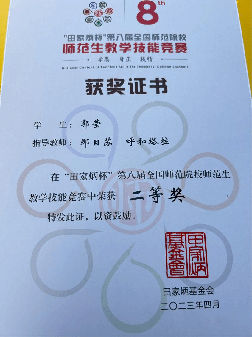 近日,“田家炳杯”第八届全国师范院校师范生教学技能竞赛决赛在浙江师范大学举行,bat365英语专业学生郭莹在历经学校初赛和全国复赛后,成功入围现场决赛,并在决赛中荣获二等奖。