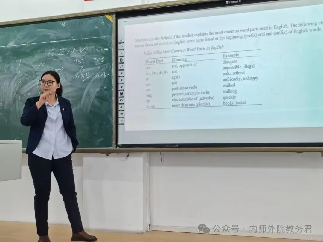 此外,Ragchaa副教授还特别强调了时间管理在词汇教学中的重要性,并建议教师优先选择高频词汇和对学生职业发展有帮助的词汇进行教学。同时,她通过引入英语习语与方言文化的教学,展示了语言与文化深度融合的魅力,拓宽了学生的表达思路。互动环节中,师生围绕数字化教育与跨文化教学展开了热烈讨论,现场气氛活跃。