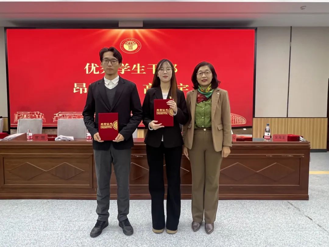 李艳茹为优秀学生干部颁发荣誉证书