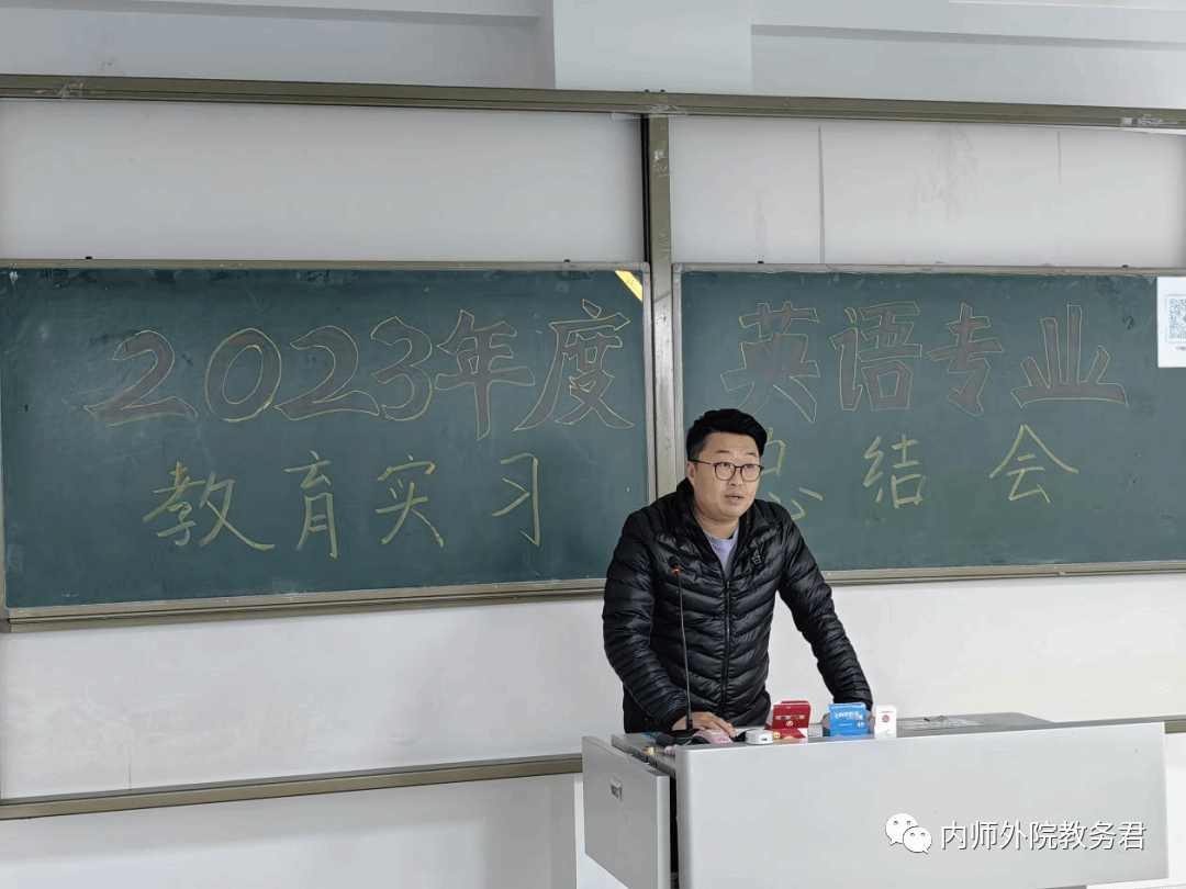 阿力更老师首先介绍了2023年英语(师范)专业教育实习的基本情况:本次教育实习由20级英语(师范)方向的153位同学参加,实习周期为8周,校内指导教师34人,校外指导教师166人,实习基地校分布于区内11盟市和北京市。实习期间,我系教师吴晓春、郭玺平、呼和塔拉、阿力更等教师还走访了bat365中文官方网站附属学校和赤峰地区十余所中小学,多方面、多维度地了解实习生的实际表现,同时也收到了实习基地校领导和实习指导教师对我系实习生的高度评价。在本次教育实习中,实习生们顺利地完成了本次实习任务,在教学能力、口头表达、人际沟通等方面得到了锻炼和提高,本次教育实习圆满完成。