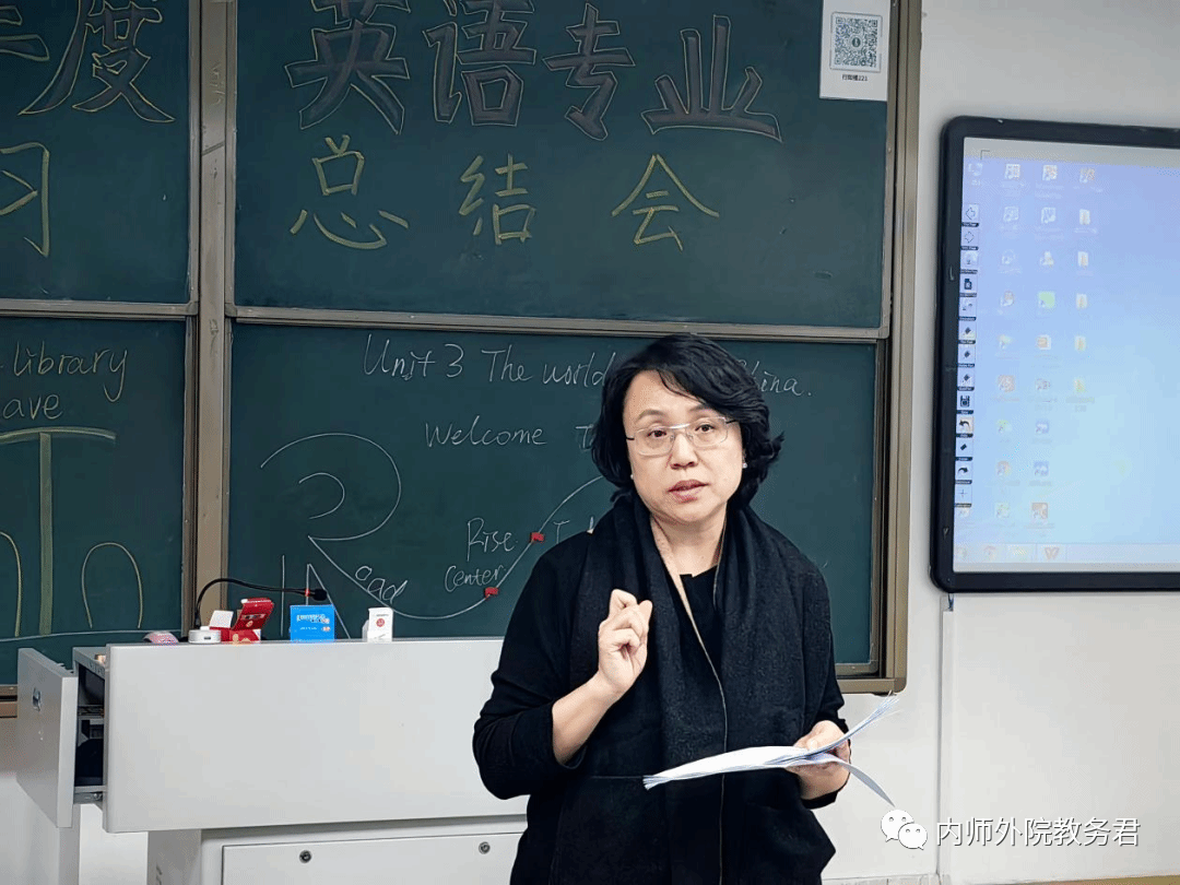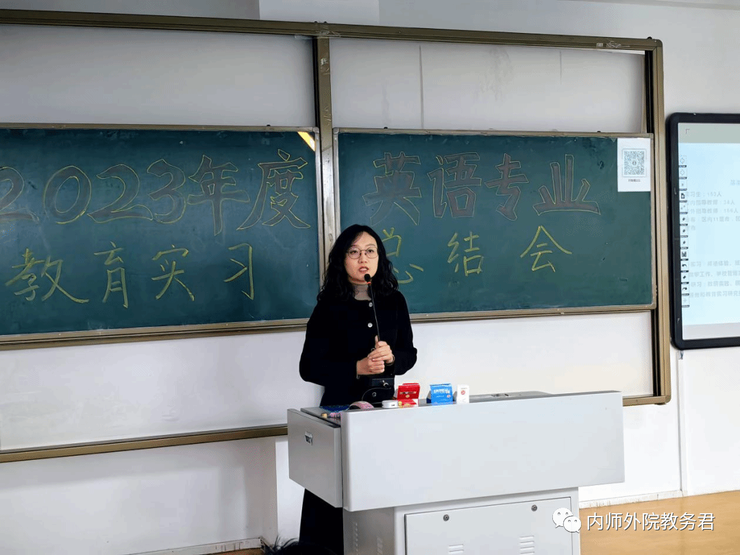 最后由那日苏副院长做总结发言,那院长指出了教师实习对师范专业学生的重要性,希望同学们保持“空杯”心态,不断“温故知新”,积极总结实习经验,不断加强自身理论学习,提升英语教师的综合能力。同时,她也希望实习生们要积极适应学校条件,利用好实习机会,促进自身成长。最后她祝贺20级英专学生的实习期圆满完成,祝愿实习生们都有美好的前景。