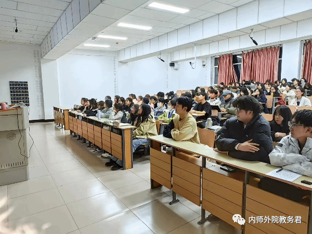 此次活动的最后一场讲座由呼和塔拉老师主讲,题目为“为师之道—英语师范生教学技能养成”。呼和塔拉老师强调,要想成为一名合格的英语师范生,首先要夯实专业基础,握专业知识,提升教学技能,形成鲜明的个人风格。其次,要在实践锻炼中提升自己的教师技能,积极参加相关比赛,培养自信。通过对两名优秀的教师技能大赛的获奖者的介绍,呼和塔拉老师建议要积极备赛,从细节入手,把握课程互动活动设置和环节的层层递进。同时,持之以恒的积累才是重中之重。