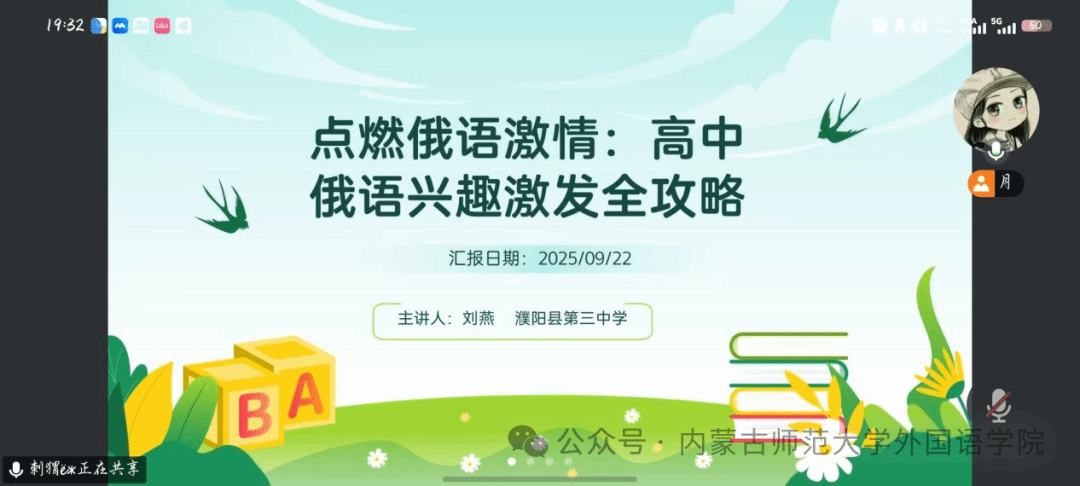为深化师范生对中学俄语教学实践的理解,提升未来教师核心能力,bat365俄语系于2025年9月17日、22日,先后邀请包头市第六中学李倩茹老师、濮阳县第三中学刘燕老师开展专题分享会。