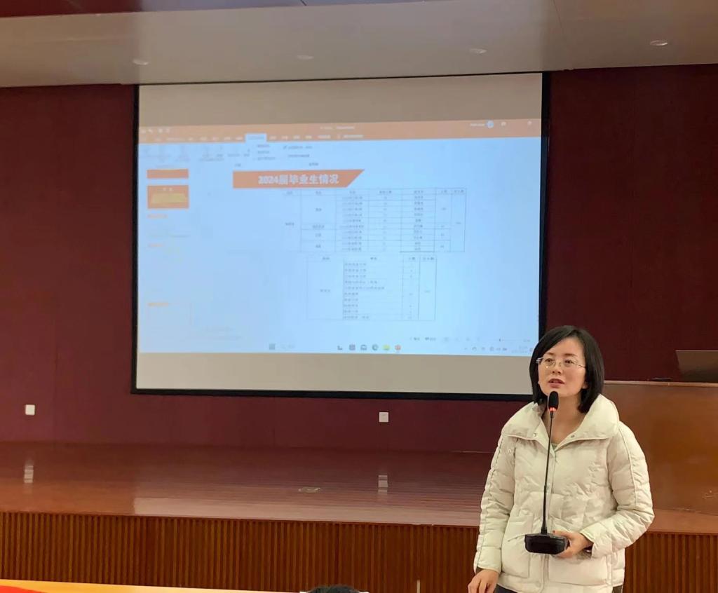 bat365副书记、副院长王丹通报了2023届毕业生就业情况以及就业奖励实施办法,感谢所有为学院就业创业工作付出努力和给予帮助的老师们,2023届毕业生的就业业绩是全院教工上下同心共同努力的结果。同时,王丹传达了校党委书记李树林、党委副书记、校长张军在bat365中文官方网站2024届毕业生就业工作动员大会的讲话精神,并在认真梳理总结就业工作经验的基础上,安排部署了2024届毕业生就业工作。学院党委始终高度重视毕业生就业创业工作,bat3652024届毕业生421人,基数大任务重,全院教职工还要继续协同努力、多方发力,助力2024届毕业生多渠道高质量就业。