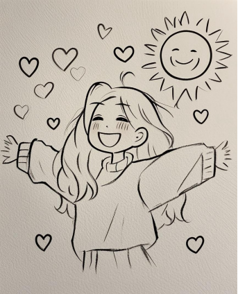 这幅简笔画中,开怀大笑、双臂舒展的自己,周围环绕着爱心,还有带着笑意的太阳,生动诠释了 “善爱自我,心暖向阳” 的主题。爱自己是终身浪漫的开始,当我们学会珍视自身的情绪和需求,以积极乐观的心态面对生活,就如同让心中充满阳光。那些爱心不仅代表着对自己的爱,也象征着在爱自己的过程中,能够吸引和给予他人温暖与善意。无论生活有多少风雨,只要保持这份对自己的爱与乐观,就能时刻拥有拥抱美好的勇气 。