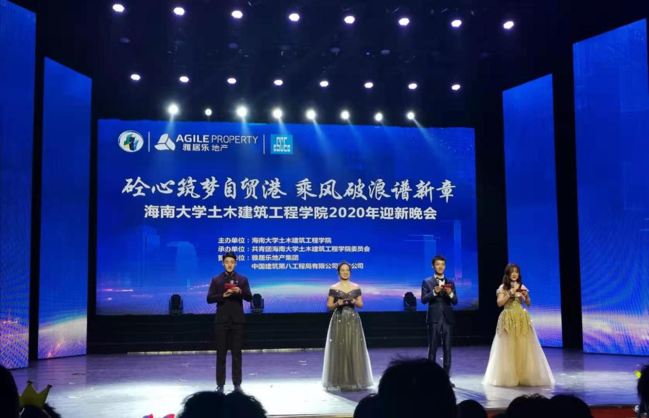20201221日晚,买球官方网站土木建筑工程学院“砼心筑梦自贸港,乘风破浪谱新章”2020年迎新晚会在思源学堂大礼堂成功举办莅临本次晚会的领导和嘉宾有买球官方网站党委书记卢江海、副院长邱宙廷、党委副书记孙晓媛、雅居乐地产集团海口事业部总经理周伟彪、中建八局南方公司营销副总监兼海南分公司副经理王晓强、中建八局南方公司海南分公司党总支副书记刘国新、全体辅导员及班主任代表。