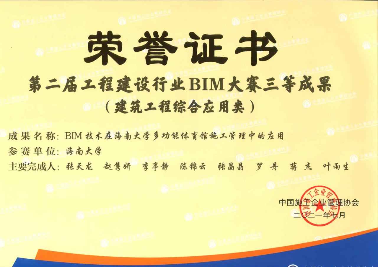 20211111日,2021第四届优路杯全国BIM技术大赛顺利落下帷幕。买球官方网站BIM协会申报的项目从1145个大赛参赛作品中脱颖而出,继2020年后再次蝉联金奖项目!由买球官方网站和上海申元工程投资咨询有限公司海南分公司联合申报的“买球官方网站多功能综合体育馆BIM技术综合应用荣获院校组工业与民用建筑金奖,由中国建筑第二工程局有限公公司和买球官方网站联合申报的“海南生态软件园G地块美伦熙语三期项目BIM技术综合应用” 荣获企业组工业与民用建筑金奖。
