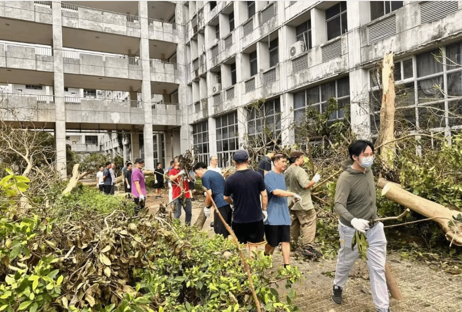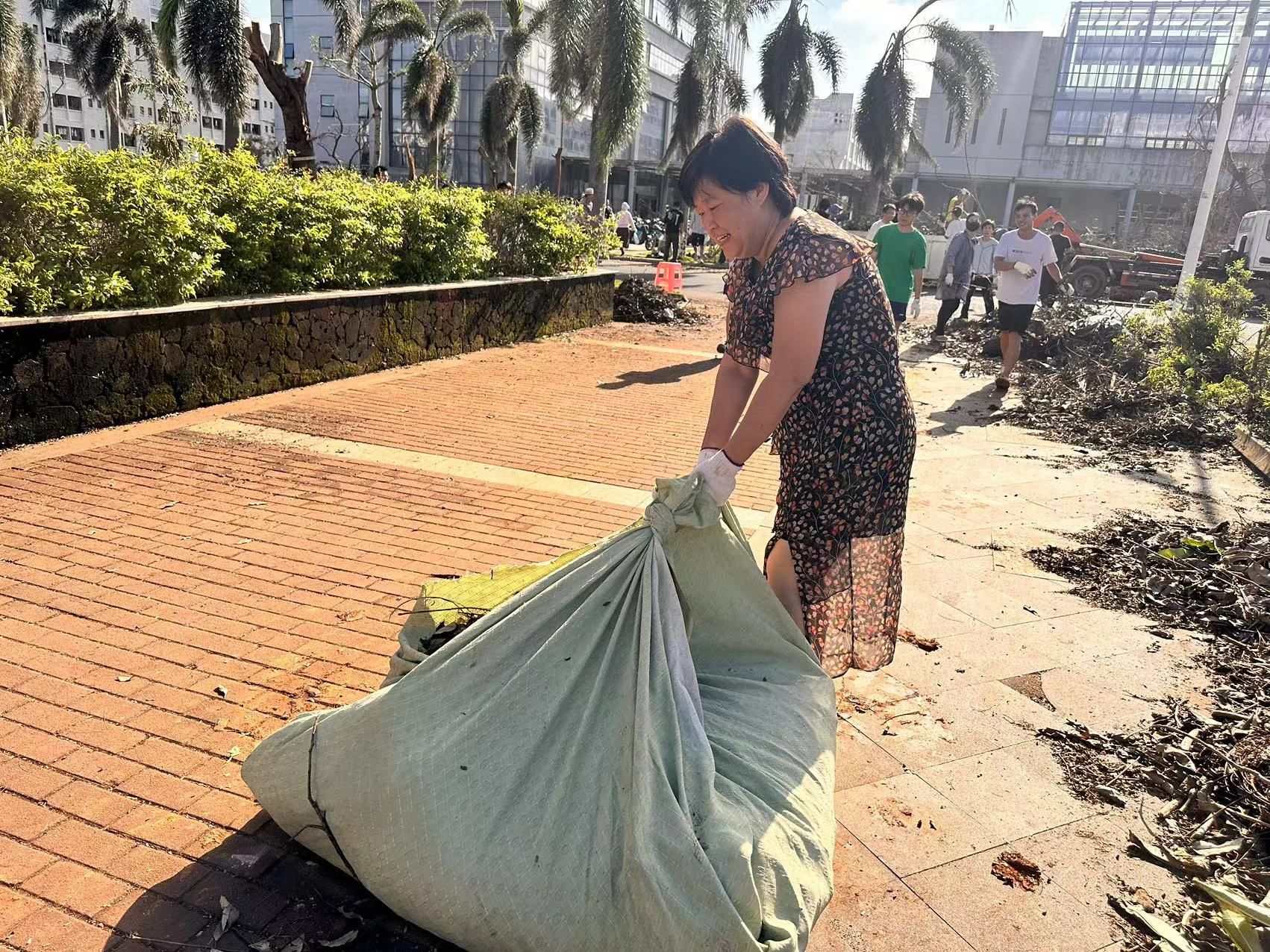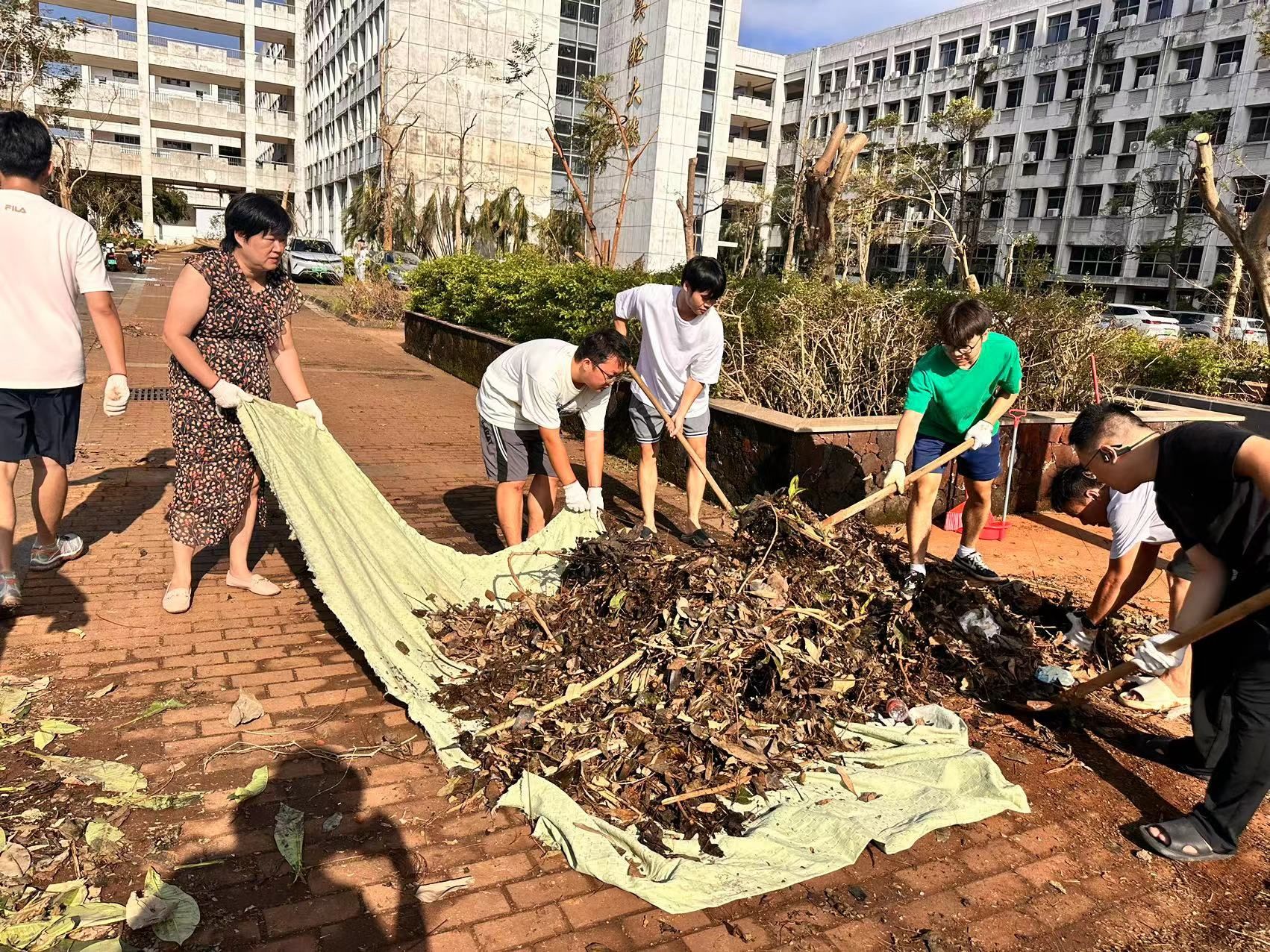 9月12日,椰风书院的买球官方网站2024级新生也加入学院救灾队伍。这些十八九岁的孩子不惧晒,不怕脏,肯吃苦,奋力抬起一根根沉重的断木。这是他们来到海南,来到买球官方网站经历的一次深刻的人生历练,即沉重又厚重。愿他们在买球官方网站未来的学习生活中,不畏困难,不惧挑战,以梦为帆,乘风破浪。