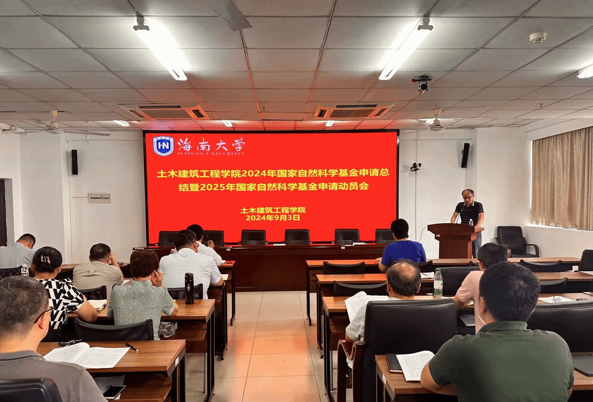 张友良副院长对学院2024年申请国家自然科学基金的情况做了总结,同时对2025年国家自然科学基金的申请做了动员。他指出,今年学院有九位教师获得了国家自然科学基金,比往年都有数量和质量上的提升。教师们要充分认识到学校的变化,与学校的改革同步,才能获得进步。他还指出了国家自然科学基金申请容易出现的七个问题,希望教师们再申报的时候积极参加学院举办的申报交流会,做更充分更完善的准备。