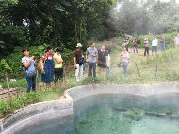 买球官网博士党员团队与美国纽约州立大学教授Refaat Hussein组成志愿专家组,在保亭县水务局副局长陈宗耀、县七仙岭温泉基础公司相关负责人的带领下,现场考察了七仙岭温泉眼、酒店温泉设施、温泉调节池以及县城污水处理厂,七仙岭温泉基础公司(温泉开发运营方)和保亭县水务公司(县城污水处理厂运营方)有关人员向专家组介绍了温泉开发利用、县城污水处理厂运营管理等情况。