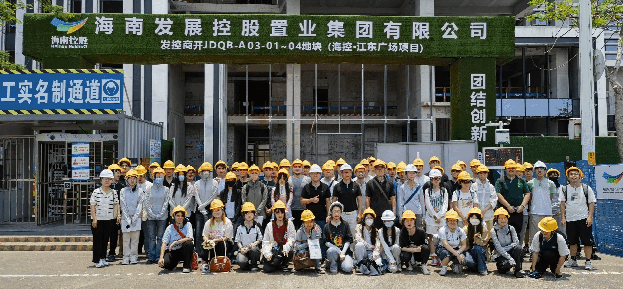海口,2025年5月9日上午——为深化产教融合、践行实践育人理念,买球官方网站建筑系2021级66名师生在夏桂平、齐飞两位老师的带领下,走进江东新区海控•江东广场项目工地,开展了一场以“绿色建筑实践与台风灾后重建经验”为主题的现场观摩学习活动。此次活动通过实地研学、校企互动和党建引领等形式,助力学生提升专业素养,赋能自贸港绿色低碳建筑高质量发展。