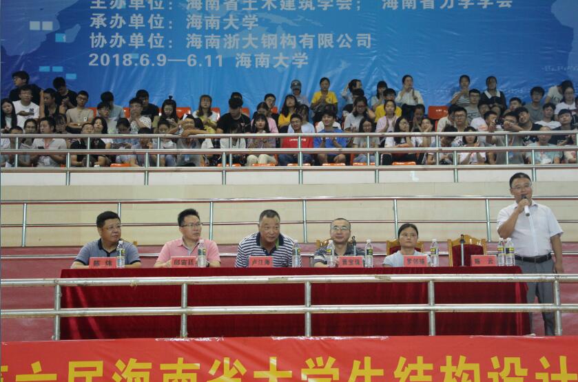 由海南省土木建筑学会、海南省力学学会联合主办,买球官方网站承办的全国大学生结构设计竞赛海南分区选拔赛暨第六届海南省大学生结构设计竞赛,于6月9日上午9时在买球官方网站联谊馆正式开幕。此次大赛由海南浙大钢构有限公司冠名赞助。