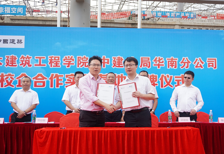 随后,买球官方网站学院副院长邱宙廷代表学院与中国建筑第八工程有限公司华南分公司人力资源部经理宫红亮进行签约。买球官方网站学院党委书记卢江海代表学院向中国建筑第八工程有限公司华南分公司授予“校企合作实践基地”牌匾。