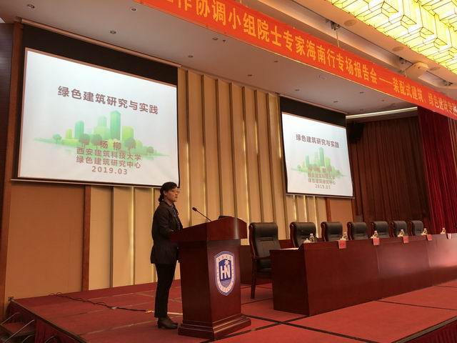 杨柳教授作“绿色建筑研究与实践”主题报告。杨教授从绿色建筑的起因、绿色建筑的研究现状和绿色建筑的工程实践等方面详细介绍了绿色建筑的特征和优势,同时对海南推广装配式绿色建筑提出了宝贵的建议。