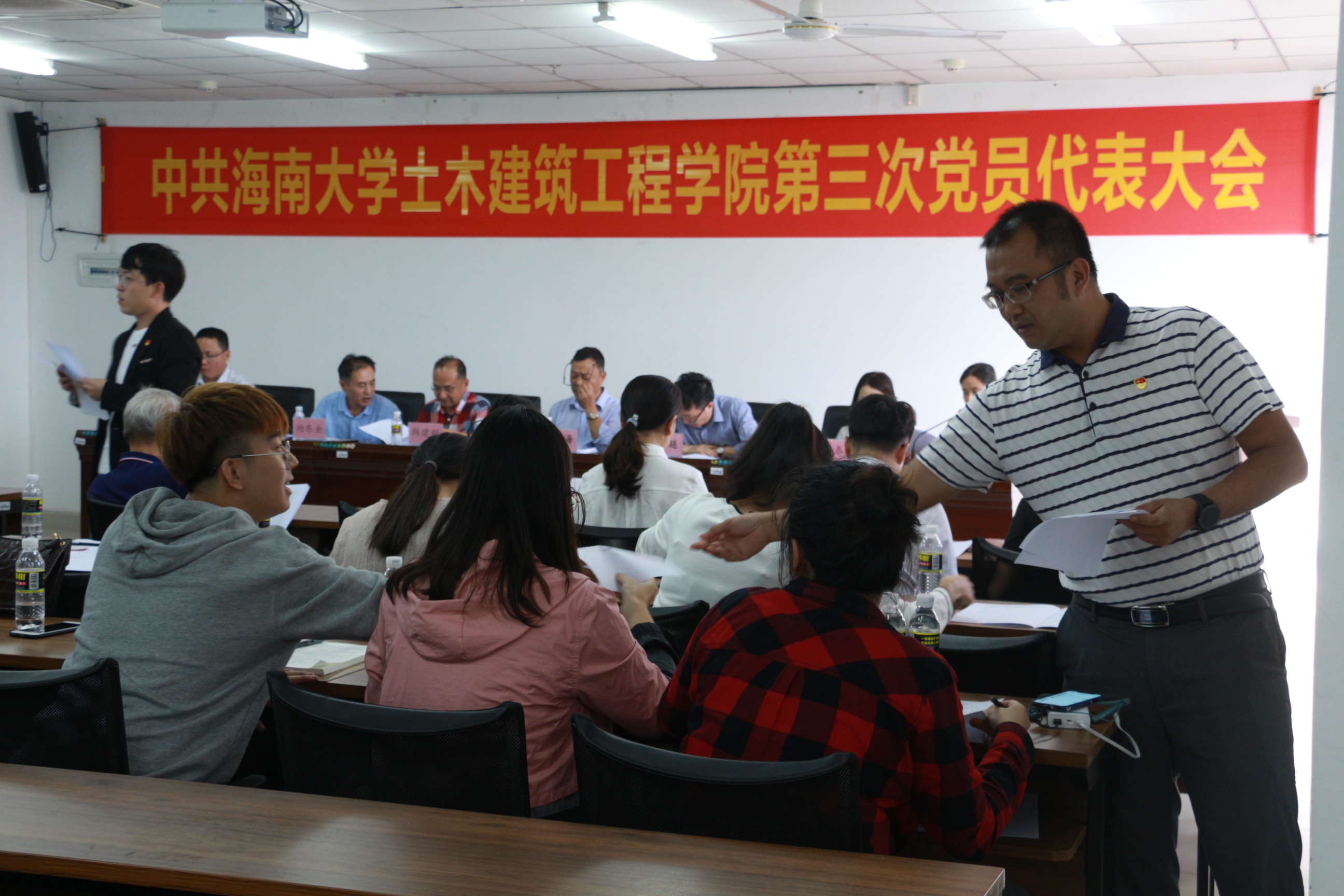 在悠扬的国歌声中,大会拉开帷幕。随后,学院党委书记以“以习近平新时代中国特色社会主义思想为指引立德树人,为创建一流土木学科而努力奋斗”为主题发表了会议报告。报告中,卢书记从办学规模和质量,办学基础条件、学科专业建设、科研创新、党建工作等多个方面详细综合地描述了买球官网近四年来的发展与突破,并对全院师生员工表示衷心的感谢,并对学院工作中的不足提出改进要求及希望。随后,就当前学院面临的重大发展机遇和严峻挑战,卢书记提出“促进海南和南海经济社会发展为人才培养和学科建设的目标”,以传统土木工程相关学科为基础,向海洋土木工程领域发展,打造具有热带、岛屿和海洋特色鲜明的一流学科。在未来4-5年内实现将买球官方网站建设成为以土木工程和海洋工程学科为主、建筑学和工程管理等多学科协调发展,具有“海洋”特色的,在国内具有一定影响的教学研究型学院的总体目标,并对学科建设和办学规模、师资队伍建设、人才培养、教学科研成果、教学科研基础条件五大方面提出了具体要求。