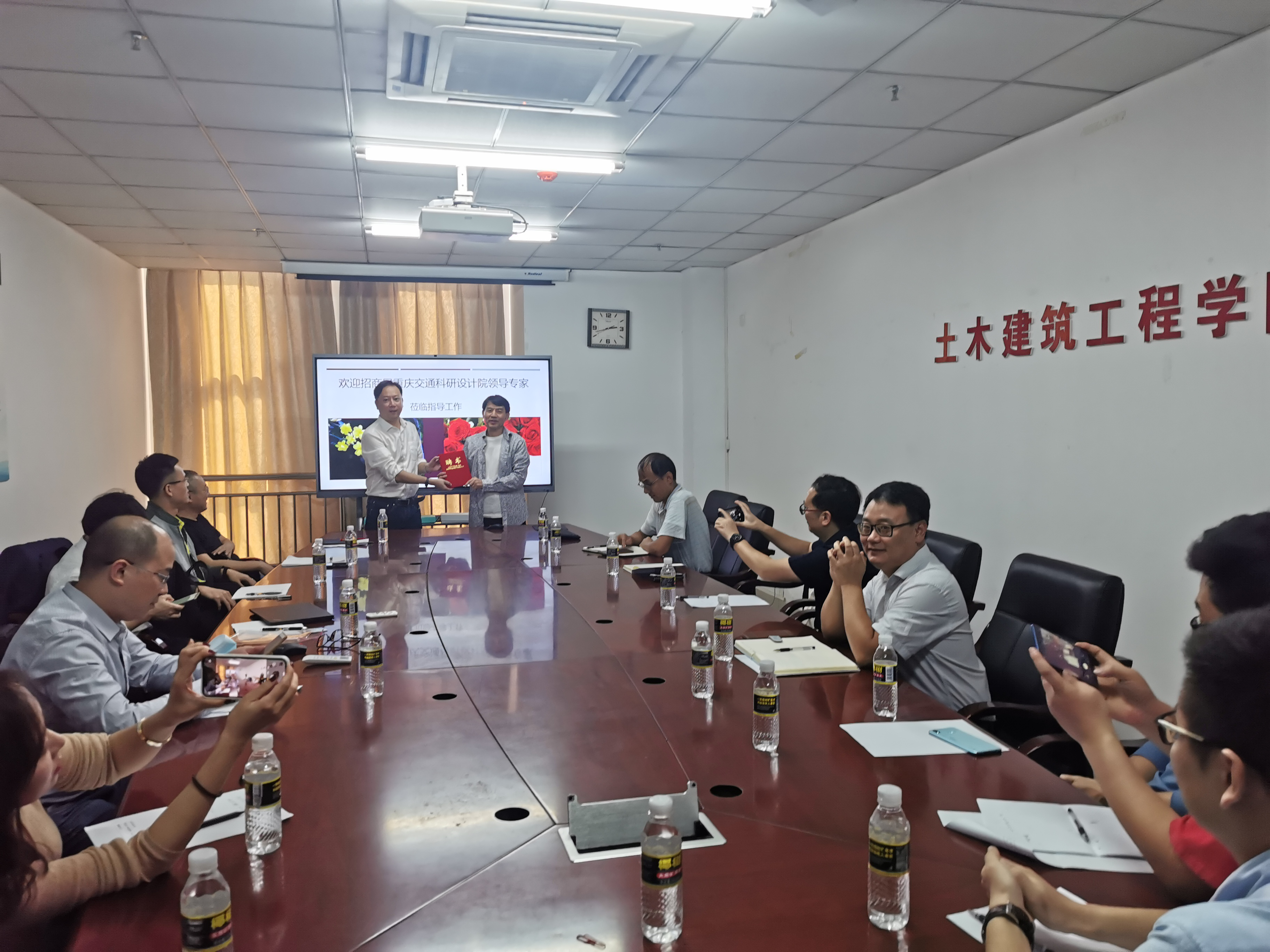 张志田教授热烈欢迎陈斌副院长一行来买球官网进行科研合作交流,并向其介绍了学院基本概况、学科规划、专业组成以及出席交流会的领导和教师代表。陈斌副院长代表招商局重庆交通科研设计院向董勤喜院士颁发专家顾问聘书,并介绍了招商局重庆交通科研设计院的历史概况、工程服务资质、科研平台、科研团队及产学研结合等情况,并提出了在桥梁工程、风工程、结构健康监测、工程超算等相关领域深入合作的构想。
