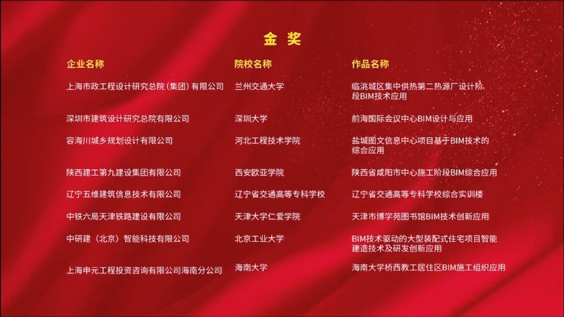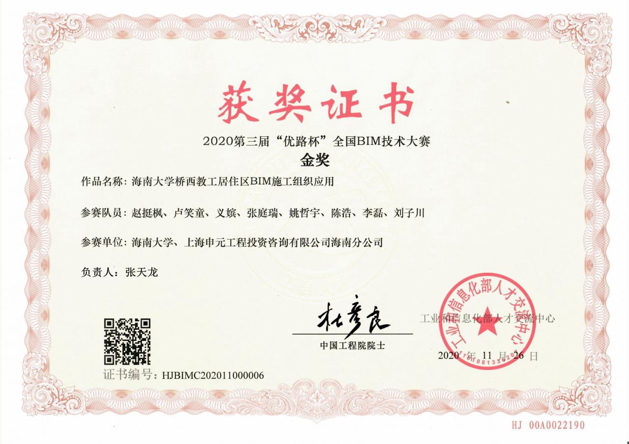 2020年12月5日,由国家工业和信息化部人才交流中心主办,石家庄铁道大学承办的2020第三届“优路杯”全国BIM技术大赛颁奖典礼成功举办,经过激烈竞争和专家评审,买球官方网站荣获多项奖励。其中由买球官方网站和上海申元工程投资咨询有限公司海南分公司联合申报的“买球官方网站桥西教工居住区BIM施工组织应用”荣获院校组金奖,由中建新疆建工(集团)有限公司和买球官方网站联合申报的“凤岗天安数码城项目BIM施工综合应用”“深圳市龙岗天安数码城项目设计施工阶段BIM深度应用”、中建二局第三建筑工程有限公司与买球官方网站联合申报的“南光中心项目施工阶段BIM应用”获企业组银奖。
