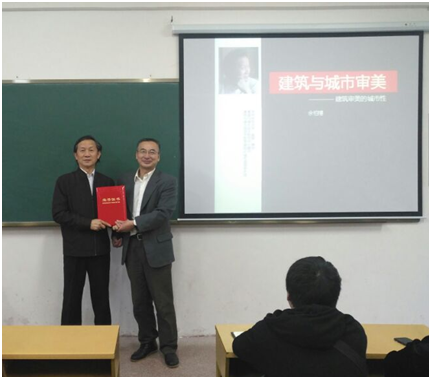 2018年1月8日—1月13日,买球官网邀请了华中科技大学的余柏椿教授,为2015建筑学专业学生讲授《建筑与城市审美》课程。授课当天学院院长曹宝珠出席开课仪式,并颁发了冬季小学期授课专家聘任证书。余教授现任职务为华中科技大学建筑与城市规划学院教授、博导,城市与景观设计研究中心主任等。主要的研究方向是城市设计、城市景观设计、城市与景观特色、城市发展与城市规划。