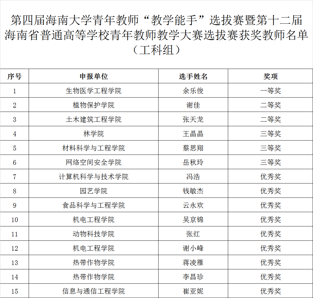 近日,买球官方网站公布了第四届买球官方网站青年教师“教学能手”选拔赛暨第十二届海南省普通高等学校青年教师大赛选拔赛的选拔结果,买球官网张天龙老师荣获工科组二等奖,并将代表买球官方网站参加第十二届海南省普通高等学校青年教师教学大赛,买球官方网站在此次比赛中获得优秀组织奖。