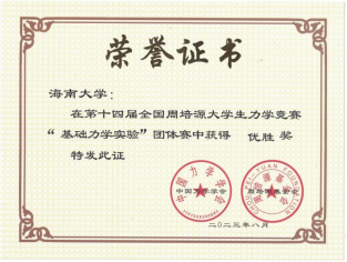 虽然海南省大学生力学基础相对薄弱,省内高校暂未开设力学专业,但本次竞赛与众多力学重点院校同台竞技并取得了不俗成绩,充分体现了我校对基础力学教育的重视和支持,也展现了海大学子的实践能力和创新精神我校将继续鼓励和支持广大参加第十届全国周培源大学生力学竞赛,增进青年学生学习力学的兴趣,为培养高素质创新人才出贡献。