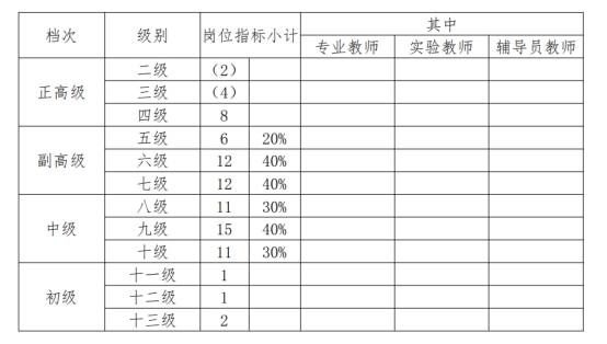 二、专业技术岗位设置及指标