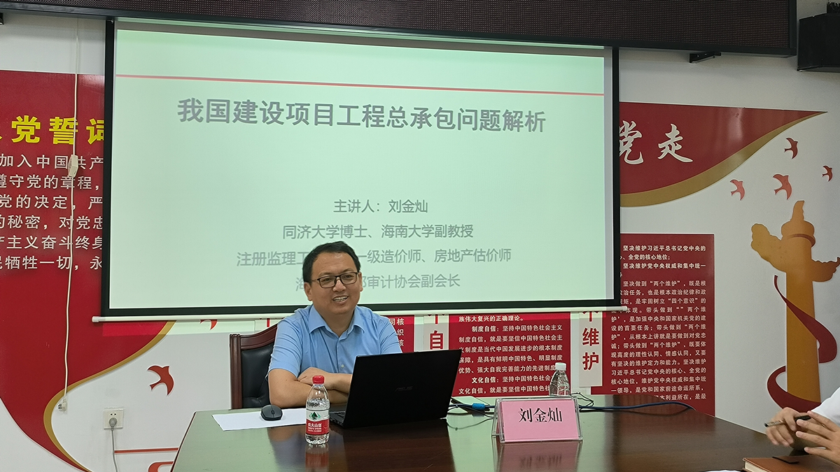2022年6月9日,学院工程管理系副教授刘金灿老师受邀前往保亭县审计局、住建局,分别作业务能力提升讲座,助力政府部门干部能力提升建设。这是买球官方网站与保亭县政府签署政校合作框架协议及买球官方网站与保亭县审计局、住建局订立合作协议之后举行的系列活动之一。