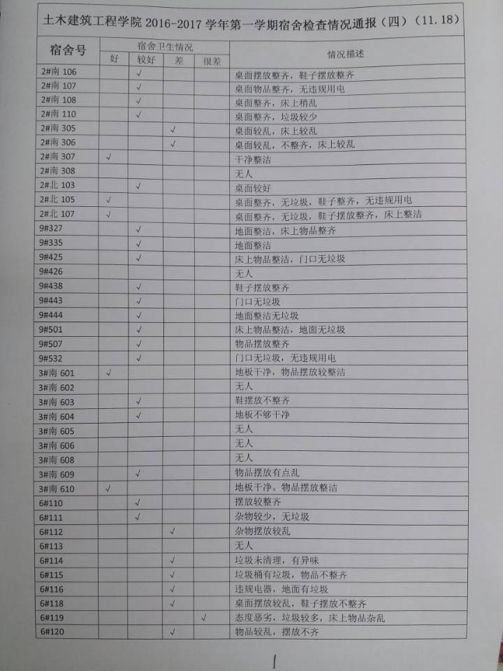 买球官方网站2016-2017学年第一学期宿舍检查情况通报(四)