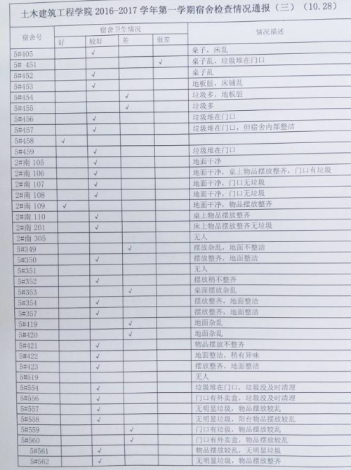 买球官方网站2016-2017学年第一学期宿舍检查情况通报(三)