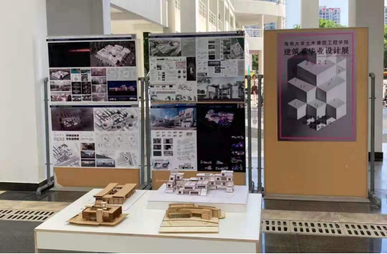 毕业设计展上,展出了2016级建筑系毕业生的优秀毕业设计作品。本次建筑系的毕业设计主题为海口现代艺术馆设计,参展作品功能流线清晰、造型富有创意,配合表达详尽的设计图纸和精美的光雕模型,彰显了建筑系学子们优秀的设计水平。