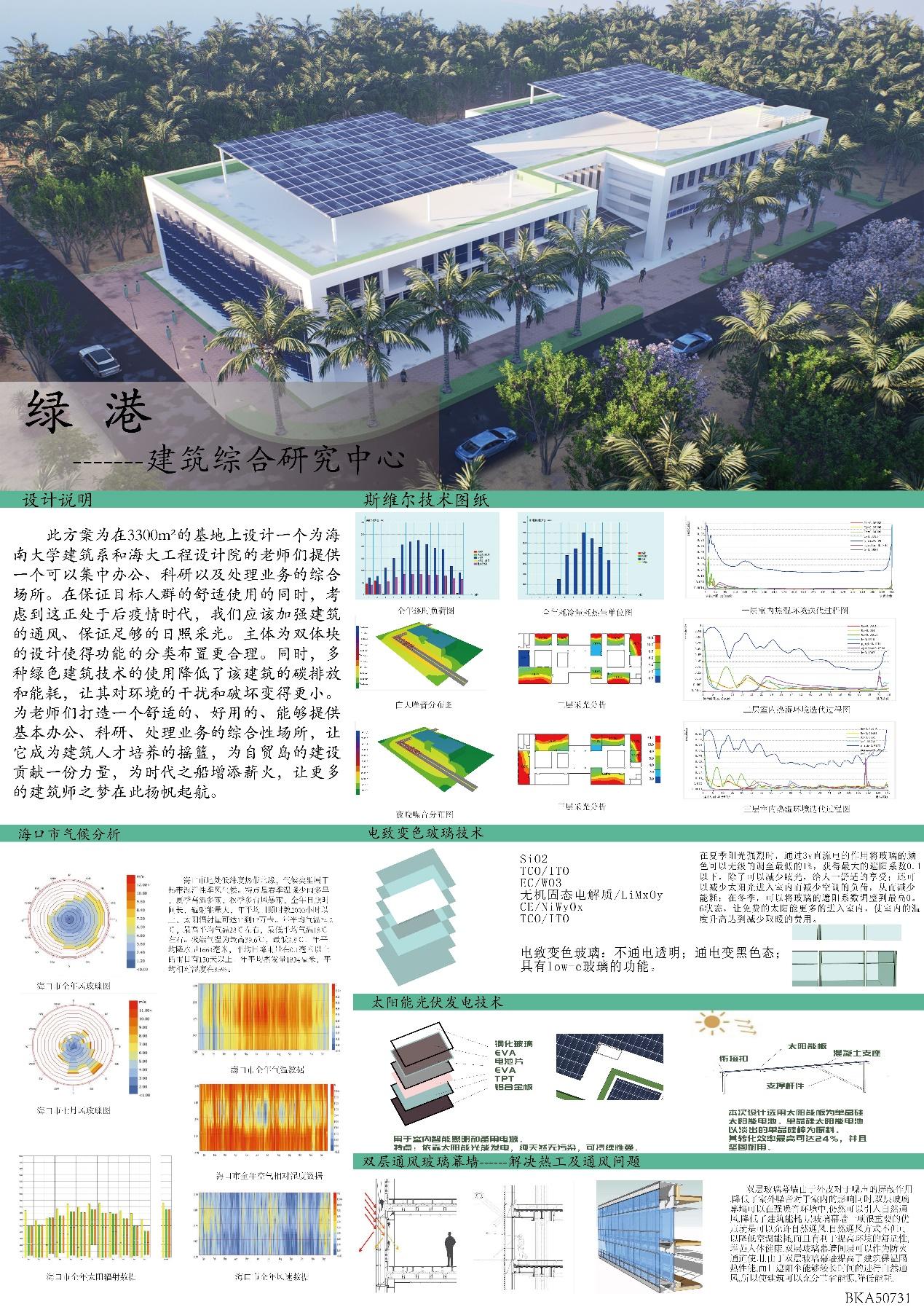三等奖作品绿港——建筑综合研究中心,此方案是在3300㎡的基地上拟建一个可以为买球官方网站建筑系和海大工程设计院的老师们提供集中办公、科研以及处理业务的综合场所。在保证目标人群的舒适使用的同时,考虑到这正处于后疫情时代,应该加强建筑的通风、保证足够的日照采光。主体为双体块的设计使得功能的分类布置更合理。同时,多种绿色建筑技术的使用降低了该建筑的碳排放和能耗,让其对环境的干扰和破坏变得更小。为老师们打造一个舒适的、好用的、能够提供基本办公、科研、处理业务的综合性场所,让它成为建筑人才培养的摇篮,为自贸岛的建设贡献一份力量,为时代之船增添薪火,让更多的建筑师之梦在此扬帆起航。
