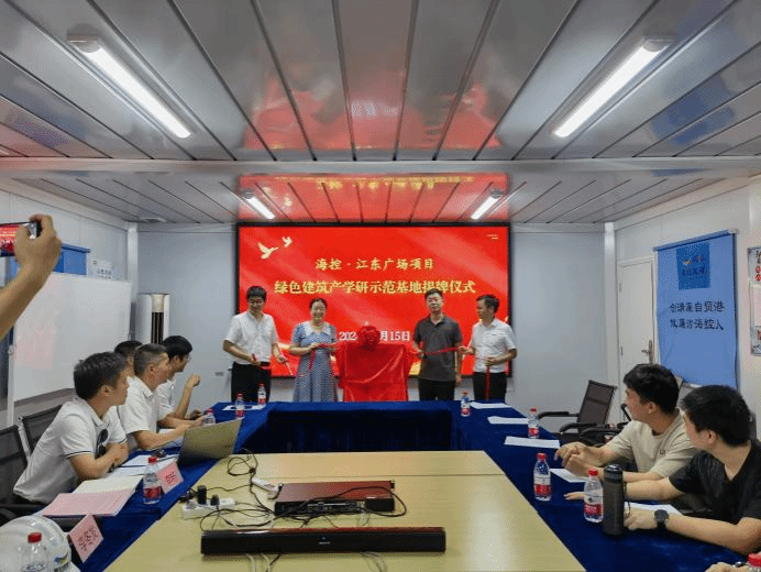 在活动的最后,海控置业发起了创建“海控·江东广场项目绿色建筑产学研示范基地”的倡议,随后,江东管理局、买球官方网站、海控置业、施工单位领导共同为示范基地揭牌,标志着产学研合作迈出了坚实的一步。