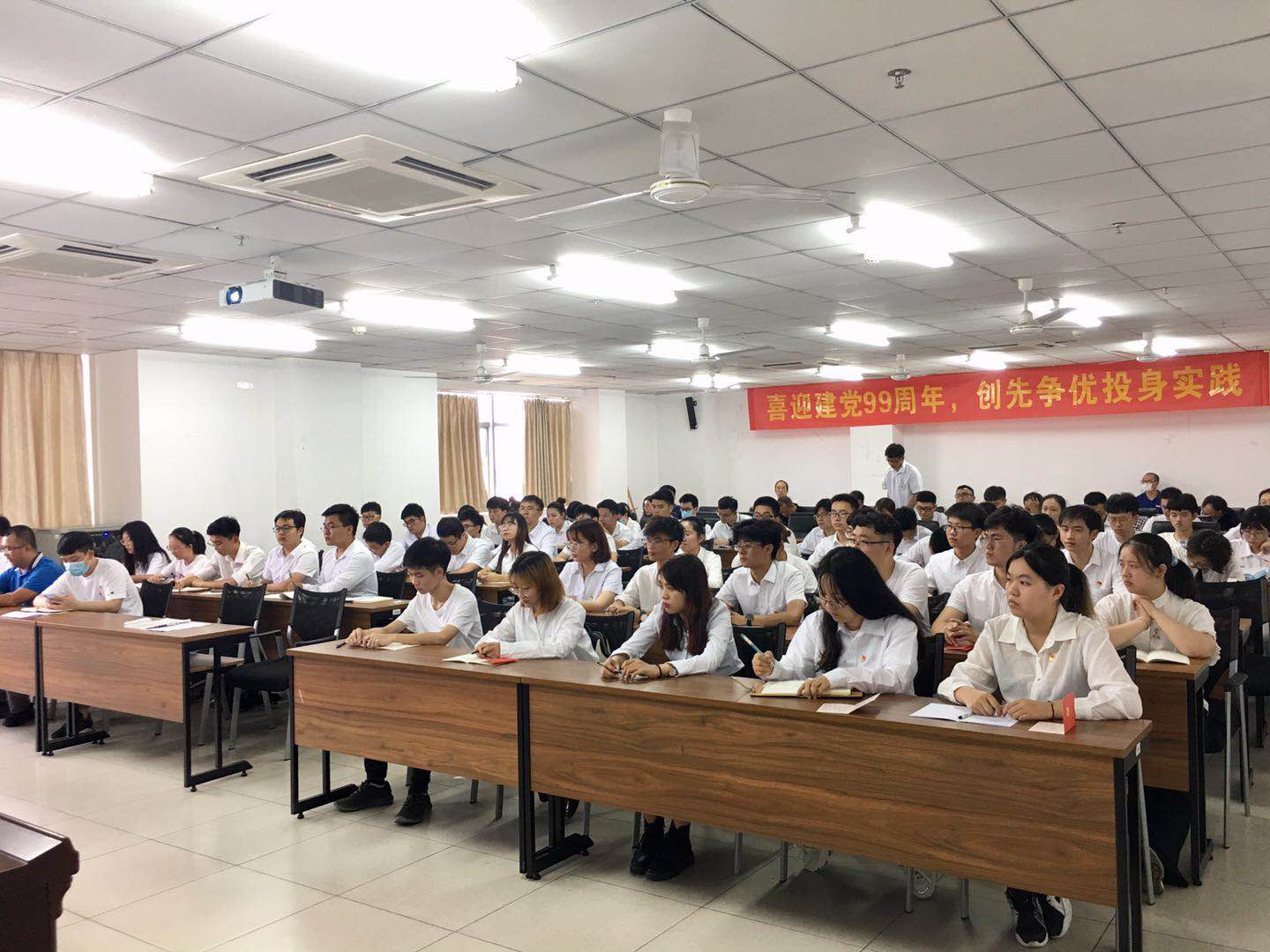 卢江海书记在大会上发表讲话,回顾了建党99年以来,中国共产党带领全国各族人民实现了从站起来、富起来到强起来的历史性飞跃,并对“不忘初心、牢记使命”主题教育进行了阶段性总结。同时,卢书记通过我国新冠肺炎疫情防控工作,指出中国共产党领导和我国社会主义制度、我国国家治理体系具有强大生命力和显著优越性。要求全体党员从党99年来的苦难辉煌和中国特色社会主义发展的艰难历程中增强继续前进的勇气和力量,树牢“四个意识”,坚定“四个自信”,坚决做到“两个维护”,践行宗旨、牢记使命、勇于担当,把个人的成长与发展,更好地融入国家和海南自贸港建设,实现“强院兴校”的奋斗目标。