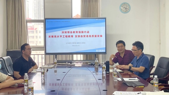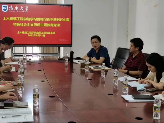 2023年6月13日下午3点,买球官方网站建筑工管行政党支部,在研发楼517会议室开展6月份主题党日活动。活动内容丰富,邀请学院领导班子成员邱宙廷、田元福同志讲授“学习贯彻习近平新时代中国特色社会主义思想主题教育”党课;开展“我为自贸港建新功”大研讨。主题党日活动由党支部召集人刘雪同志组织并主持,党支部所有在校党员(外出进修、访学除外)参加了活动。