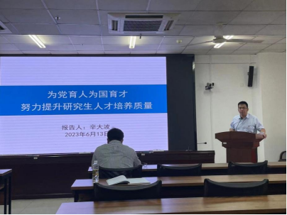 辛大波副院长做了《为党育人、为国育才,努力提升研究生人才培养质量》的主题报告,报告从研究生教育的使命、研究生培养的难点、如何提升研究生培养质量三个方面展开。辛副院长在报告中强调,党的二十大报告中习近平总书记作出了教育、科技、人才是全面建设社会主义现代化国家的基础性、战略性支撑的重要论断,要坚持为党育人、为国育才,全面提高人才自主培养质量,着力造就拔尖创新人才。这也是研究生教育的历史使命。目前我国在校研究生规模已300,提高培养质量势在必行。在导师指导、科学研究、培养方案、学科资源和行业就业等方面都存在相应的难点,需要努力改善。辛院长就如何提升研究生培养质量问题,从导师队伍建设、培养体系构建、科学研究选题、平台建设、招生工作等方面展开了论述,并用五句话进行了概括总结,即:锤炼过硬导师队伍,筑牢人才培养之基;优化完善培养方案,不断提高培养质量;学科交叉既是手段,更是一种思维方式;搞好科研平台建设,反哺于研究生培养;注重平时招生宣传,重在学生口口相传。